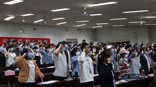 第二十届学生会主席团、部长颁发聘书并合影留念。接着,学生会各部门负责人通过PPT演讲等方式逐一介绍各部门的概况。第二十届学生会团委第一副书记赵子杰带领第二十届学生会全体成员宣誓,“打造魅力团队,展现文新风采”是我们矢志不渝的追求,“文新文新,文艺双馨”是我们永恒的风采,“文以载道,薪火相传”是我们肩负的责任。第二十届学生会主席蔡雨婷发言,从四个方面系统地提出工作要领,并对全体成员提出期望。