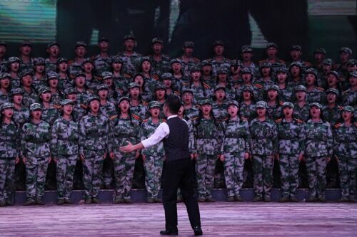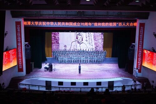 歌声悠扬,内心激昂,伴随着《我和我的祖国》熟悉的旋律,满堂师生挥舞手中小国旗,百人大合唱就此拉开序幕。刘建平副校长作开场致辞,“合唱是91自拍