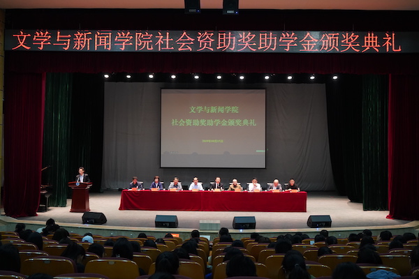(文新通讯员:唐若兰、任雨萱)10月15日下午,文学与新闻学院社会资助奖助学金颁奖典礼于学生活动中心报告厅圆满举行。副校长刘建平教授,深圳市凡恩公司总经理付早根,瑜水慈善基金会公益资源总监樊婧,广告专业校友会代表易建国、杨乐,新闻专业校友李强以及学院领导李剑波、赵猛、季多武、周鹏飞,教师代表覃岚、皮华林、孙丰国、唐晓玲、吴钊和学工办老师共同出席本次典礼,各类奖助学金获得者以及91自拍