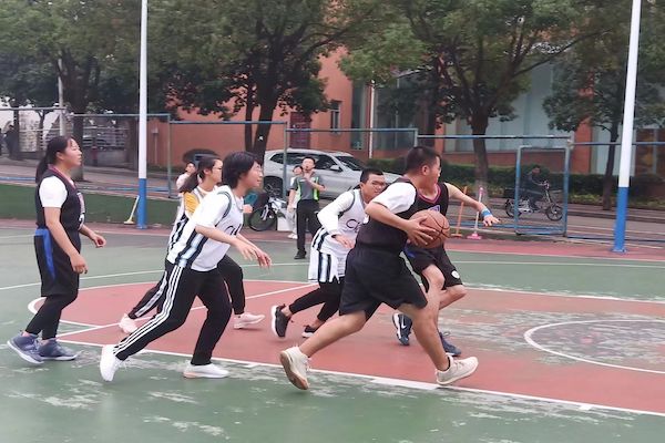 裁判一声哨声,比赛正式拉开序幕。比赛开始,17新闻广电的队员们比赛战略取得阶段性胜利。对员们积极配合,防守结合的同时突出队员个人优势。17新闻广电女将彭姗姗接连上球,为本班打下可喜的分数,赢得现场欢呼尖叫不断。比分被迅速拉大,但19新闻一班队员们不甘落后,积极寻求着突破办法,努力追赶分数。球员蒋嘉祺突破重重防守,两次接近篮筐。在他的不懈努力下,新闻一班拿到了本场第一个两分。第一节比赛,新闻广电以38:2的成绩遥遥领先于新闻一班。