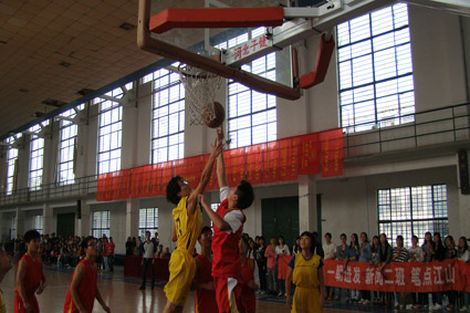次节比赛,12新闻2班继续凭借黄凌超的身高优势,主攻篮下,同时又通过周思聪的内线分球,为女将董燕飞与李彩创造外线投篮机会。而13新闻1班连悦羽恫在进攻端投篮命中率出现下降,进攻屡次未能得手。半场结束,比分胶着,13新闻1以52:50的微弱优势继续领先。