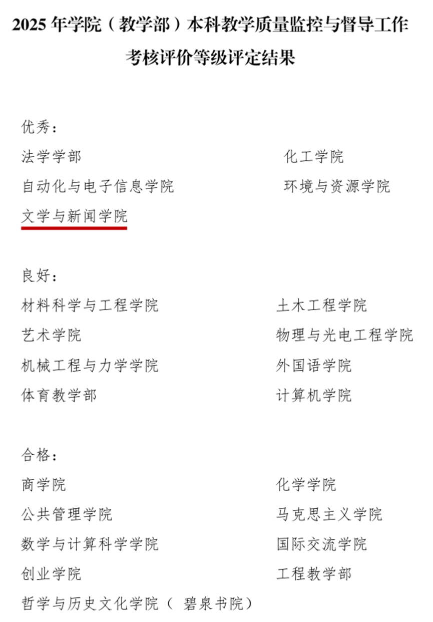 2025年学院(教学部)本科教学质量监控与督导工作考核评价结果公布,91自拍